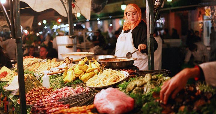 عطر غذا، خیابان های شهر مراکش را پر کرده است. شهری که نمونه اش را نمی توانید در جای دیگری پیدا کنید. شهر مراکش یعنی غذای خیابانی! عصر ها، جمعیت زیادی در میدان جم الفنا جمع می شوند تا از غذاهای خوشمزه ی خیابانی بچشند. در این غرفه ها از آب پرتقال تازه گرفته تا سوپ حلزون را می توانید پیدا کنید. در غرفه های غذای خیابانی مراکش، برای هر سلیقه ای غذا وجود دارد و مطمئنا دست خالی از آن بر نمی گردید. یکی از خوشمزه ترین اسنک هایی که می توانید امتحان کنید، ملویی است که نوعی پنکیک مراکشی محسوب می شود. مراکشی ها علاقه ی زیادی هم به شیرینی دارند و این باعث شده تا بتوانید خوشمزه ترین و رنگی ترین شیرینی ها را در این شهر پیدا کنید.