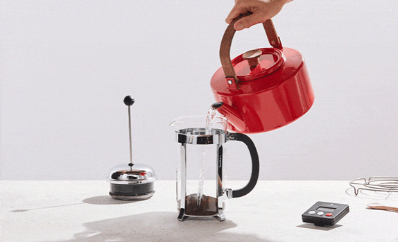 4:قهوه آسیاب شده را درون فرنچ پرس بریزید وآب جوش رابه صورت دورانی وبه آرامی برروی پودر قهوه بریزید.