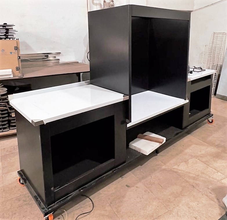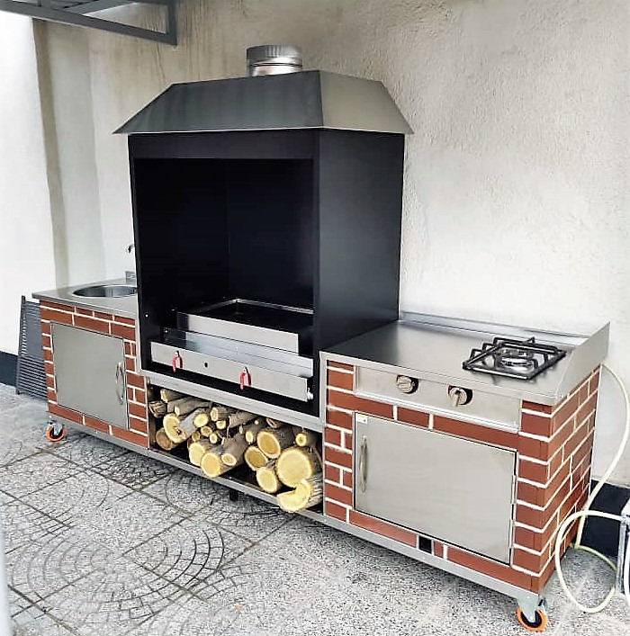 - ترکیبی از باربیکیو و سایر لوازم مورد نیاز یک آشپزخانه مانند میزکار، سینک، اجاق خوراکپزی و یخچال
