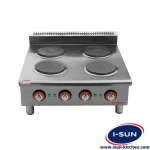 اجاق برقی صنعتی یکی از تجهیزات و دستگاه های آشپزخانه های صنعتی و فست فود می باشند که دسترسی به گاز ندارن  و به صورت مداوم با برق سرو کار دارند از این رو شرکت روماک توانسته با تولید این دستگاه در سه مدل 2 و 4 شعه رومیزی و 4 شعله فردار نیاز شما آشپزان گرامی را فراهم کند.  لازم به ذکر است که دو شعله ها دارای برق تک فاز ولی چهار شعله ها دارای برق 3 فاز می باشند . کار با این دستگاه بدین صورت می باشد ولوم را چرخانده و اجاق برقی روشن می شود .