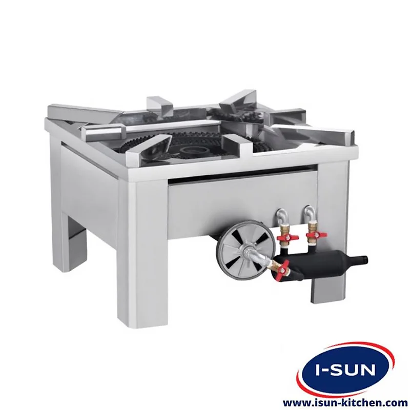 اجاق زمینی 4 شعله کوره دار یا اجاق پلوپز 4 شعله کوره دار یکی از انواع اجاق های بسیار پر استفاده است که در هر جایی با نیاز به پخت با حجم بالا مورد استفاده قرار می گیرد. این اجاق ها نه فقط رستوران ها، بلکه در آشپزخانه های شرکت ها و کارخانجات، مغازه های پخت آش و حلیم، هیئت ها، موکب ها و… مورد استفاده قرار می گیرد. اما همان طور که از نام آن مشخص است این مدل اجاق ها دارای کوره می باشد. تفاوت عمده ی این مدل با اجاق های بدون کوره در قدرت حرارت و شعله می باشد. یعنی قدرت انتقال حرارت و شدت حرارتی که منتقل می شود در این مدل بسیار بیشتر می باشد. از آنجاییکه ممکن است در بعضی جاها مثلا در حین پخت غذاهایی مانند خورشت، آش، حلیم و … و یا حتی پخت برنج در حجم بالا نیاز به حرارت بیشتری باشد و یا اینکه بتوان در زمان پخت صرفه جویی کرد این مدل اجاق ها مورد استفاده قرار می گیرد. این دستگاه ها از استیل کاملا ضد زنگ ساخته شده تا کاربران عزیز بتوانند با خیال راحت به شستشوی آن بپردازند و بهداشت محل پخت را به صورت کامل مورد توجه داشته باشند.