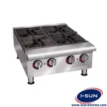اجاق 4 شعله رومیزی گازی طرح Apw  یکی از محصولات شرکت آیسان می باشد که از تجهیزات بسیار کاربردی در رستوران و فست فود می باشد. این دستگاه با توجه به رومیزی بودن روی میز کار یا یخچال/فریزرهای زیر اجاق قرار می گیرد. استفاده از یخچال/فریزر زیر اجاق جهت ارتباط راحت تر با دپو هنگام کار با دستگاه می باشد. بدنه ی این دستگاه از استیل بگیر 430 به ضخامت 0.8 و ورق رویه از استیل بگیر 430 به ضخامت 1 میلی متر ساخته شده. دستگاه همچنین دارای 4 پایه ی آلومینومی با قابلیت تنظیم ارتفاع می باشد. این دستگاه مناسب برای رستوران یا فست فودها با ظرفیت پخت متوسط می باشد.