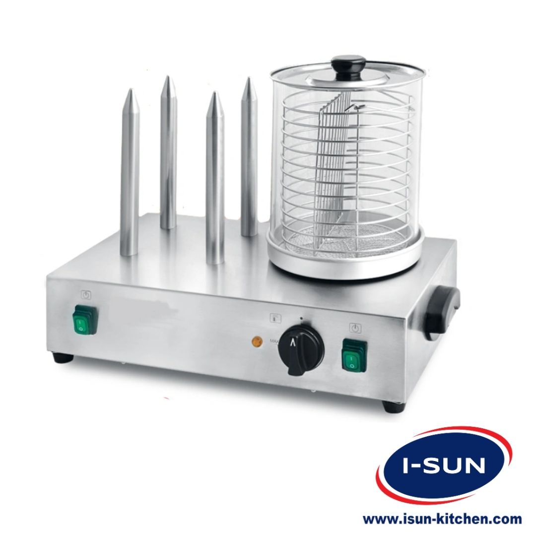 تهیه ی غذاهای محبوب با روش های پخت جدید همواره یکی از چالش های فست فودها و کافه ها جهت افزایش مشتری می باشد. به صورت عمومی مشتریان از این نوع غذاها استقبال زیادی انجام می دهند و بهمین دلیل این دستگاه ها می تواند جهت پخت و افزایش مشتری مناسب باشد. یکی از این دستگاه ها، دستگاه هات داگ پز دارای بخار می باشد. این دستگاه دارای یک مخزن جهت قرار دادن هات داگ می باشد که پس از روشن کردن دستگاه با ورود بخار به مخزن کوچک پخت شروع می شود. ضمنا روی دستگاه چهار عدد استوانه جهت گرم کردن نان وجود دارد. با توجه به عدم نیاز به روغن برای پخت هات داگ این دستگاه می تواند انتخابی بسیار مناسب برای استفاده در پخت غذاهای رژیمی و جهت سلامتی بیشتر نیز باشد. این دستگاه تمام استیل می باشد و به صورت برقی کار می کند. با توجه به ابعاد کوچک و عدم نیاز به گاز و روغن می توان به راحتی آن را جابجا کردن و همچنین در انواع محیط های مختلف از آن استفاده نمود. همچنین کار کردن با این دستگاه بسیار راحت می باشد و نیاز به تخصص خاصی برای پخت هات داگ ندارد.