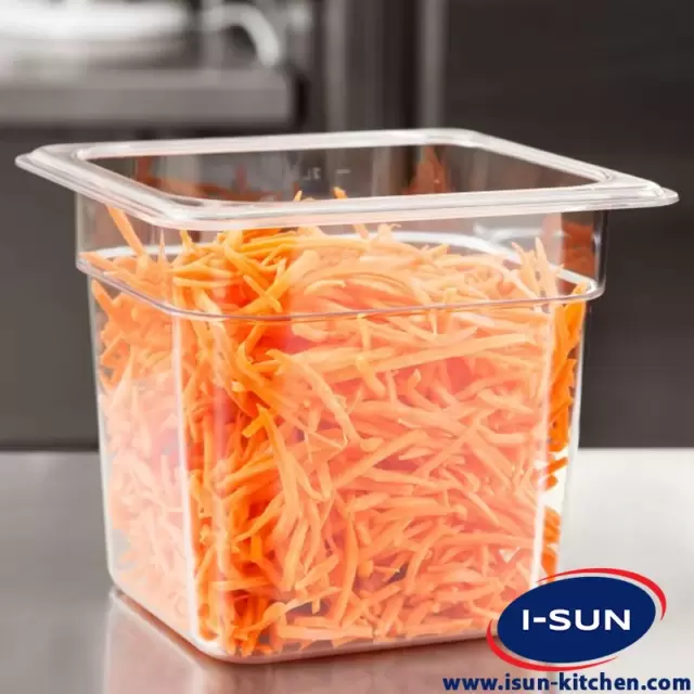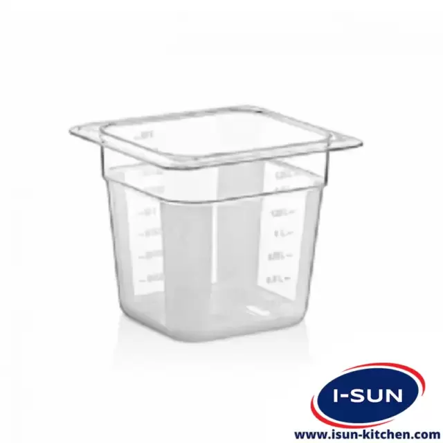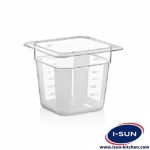 بن ماری 1/6 عمق 15 شفاف از مواد اولیه پلی کربنات PC ساخته شده و برای تماس با مواد غذایی مناسب است. در هنگام استفاده هیچ تغییری در بو و طعم غذا ایجاد نمی شود. در برابر درجه حرارت -۴۰ / + ۹۹ درجه مقاوم است و قابل جمع آوری و بازیافت است و دارای مجوز توسط NSF.مطابق با مقررات محصولات تماس با مواد غذایی TR-34-K 186769 وزارت غذا ، کشاورزی و دامداری ترکیه تهیه شده است.