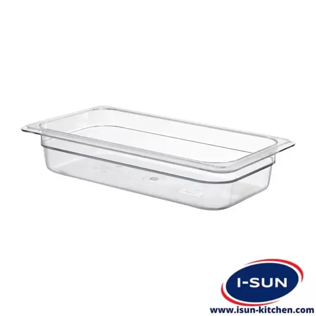 بن ماری 1/3 عمق 6/5 شفاف از مواد اولیه پلی کربنات PC ساخته شده و برای تماس با مواد غذایی مناسب است. در هنگام استفاده هیچ تغییری در بو و طعم غذا ایجاد نمی شود. در برابر درجه حرارت -۴۰ / + ۹۹ درجه مقاوم است و قابل جمع آوری و بازیافت است و دارای مجوز توسط NSF.مطابق با مقررات محصولات تماس با مواد غذایی TR-34-K 186769 وزارت غذا ، کشاورزی و دامداری ترکیه تهیه شده است.