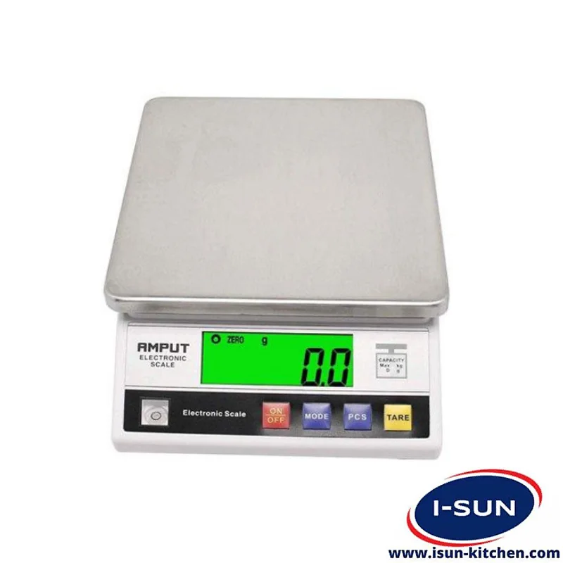ترازو دیجیتالی آمپوت بدنه ای از جنس پلاستیک فشرده است و سینی آن نیز از استیل ساخته شده و نمایشگر LCD ترازو با نور پسزمینه سبزرنگ هم در کنار کلیدها و بقیه اجزای ترازو، ساختاری هماهنگ و کاربردی برای آن به وجود آورده است. ترازوی آمپوت کاربردهای مختلفی دارد که نیاز افراد مختلف در حوزههای تجاری و صنعتی و علمی را برآورده میسازد. با نگاهی به بدنه ترازوی صنعتی آمپوت چهار کلید را بر روی آن ملاحظه میکنید. کلید روشن و خاموش ترازو که کارکردی مشخص دارد. کلید MODE در کنار کلید روشن و خاموش ترازو قرار گرفته و واحد وزنی را در ترازوی گرمی آمپوت تغییر میدهد؛ به عبارتی ترازو امکان وزن کردن به واحدهای وزنی دیگری غیر از گرم را نیز داراست. دکمه PCS هم دسترسی کاربر را به توانائی شمارش قطعه ترازو هموار میسازد؛ با بهره بردن از این توانائی میتوان تعداد قطعههای کوچک هموزن را با وزن کردن کل آنها مشخص کرد و شیوه کار آن در دفترچه راهنمای ترازو آمده است. دکمه TARE هم وزن ظرف یا بسته کالای در حال توزین را از وزن کالا کم میکند و وزن خالص آن را نشان میدهد؛ به این توانائی ترازو پارسنگ گفته میشود. حباب تراز ترازو قطعه شمار آمپوت نیز بر روی بدنه قرار گرفته و با تنظیم پایههای جلویی ترازو، به ایستادن صاف و بدون لغزش آن بر روی میز یا هر جای دیگری کمک میکند