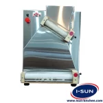 این دستگاه قابلیت پهن کردن خمیر پیتزا را به صورت کاملا اتوماتیک دارا می باشد.با داشتن این دستگاه در یک کارگر صرفه جویی می شود همچنین به دلیل دارا بودن سرعت کار باعث آماده سازی و پخت پیتزای بیشتری خواهد شد. دستگاه رولرخمیر پیتزا با دو ردیف غلطک موازی خمیر کاملا گرد با لبه سالم و با قطرثابت و تنظیم ضخامت از ۰/۵ تا ۵ میلیمتراست و حداکثر قطر پیتزا تا ۴۰ سانتی متر می باشد. این خمیرپهن کن ظرفیت تولید ۵۰۰ قطعه در ساعت را دارد و عملکرد دو مرحله ای برای حفظ حالت اسفنجی خمیر دارد. جهت ایمنی دست مرطوب دارایکلید ۲۴ ولت است.