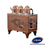 سماورمسی مراکشی این امکان را به شما میدهد تا همزمان دو طعم چای برای ذائقه های مختلف تهیه کنید یا چای را همزمان با دمنوش عمل آوری کنید.چای ساز یا همان سماور مراکشی ، مناسب استفاده در هتل ها، کافه ها، کافی شاپ ها، رستوران های سنتی، اداره جات، دفاتر کار و… این سماور با طراحی بسیار زیباو متفاوت داراری مخزن40 لیتری وقابل اتصال به آب شهری در دو نوع برقی وگازی می باشد.این محصول تماما از جنس مس بوده وتولید کشور ترکیه می باشد