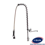 شیر شاور رو سینکی ترک تمام استیل دارای دو خروجی مجزا ضد زنگ به صورت روسینکی ، کاربرد شیر شاور صنعتی در سینک آشپزخانه های صنعتی و ماشین های ظرفشویی برای شستشوی میوه و سبزیجات استفاده می شود ، شیر شاور بر روی سینک ظرفشویی نصب می شود و با ایجاد آب دارای فشار کلیه نخاله های غذایی را از روی ظروف جدا کرده و آنها را آماده برای قرار دادن در ماشین ظرفشویی می کند و در رستوران ها و آشپزخانه های صنعتی که نیاز به شستشوی تعداد حجم بالایی از ظروف می باشد و نیز جهت قرار گرفتن بر روی سینک خط شستشوی ماشین ظرفشویی به کار می رود.