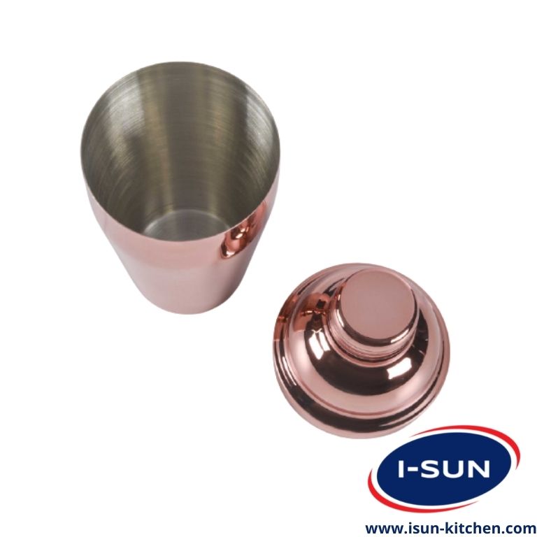 شیکر استیل رز گلد 750 میلی لیتری سه تکه از استیل بسیار با دوام ساخته شده است. نخستین مزیتی که این نوع شیکر دارد، تکه بالایی آن است که به عنوان یک وسیله اندازه گیری کاربرد دارد. این شیکر همچنین داخل درب خود یک صافی سرخود دارد که نیاز شما را به استرینر (صافی) برطرف می کند و سرعت را نیز بالا می برد.در تهیه نوشیدنی های ترکیبی، یکنواختی همگن بودن نوشیدنی نهایی اهمیت زیادی دارد. یکی از لوازمی که در تهیه نوشیدنی ها استفاده می گردد شیکر می باشد. با استفاده از شیکر و افزودن یخ همچنین می توانیم به سرعت نوشیدنی خود را خنک سرو کنیم. از طرفی استفاده از شیکر توسط بارتندر و باریستا دارای جذابیت بصری بوده و برای مشتریان یک کافه یا رستوران ایجاد جذابیت می نماید.