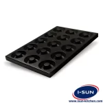 قالبهای کیک جهت پخت انواع کیکهای قنادی در شکلهای مختلف و همچنین انواع شیرینی تولید میشود. این قالب از جنس آهن با ضخامت 0/7 و روکش نچسب به صورت سینی برای پخت 15 عدد شیرینی دونات طراحی و تولید شده است.