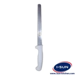 برای برش تمیز و آسان کیک و نان نمی توان از کاردهای متداول آشپزی استفاده کرد. با استفاده از چاقو برش نان اره ای به دلیل ساختار دندانه ای تیغه آن این کار را به راحتی انجام خواهید داد. این ابزار وسیله ای دو کاره محسوب می شود چون با استفاده از آن هم کیک را برش زده و هم به عنوان کفگیر میتوانید آن را زیر برش کیک برده و داخل بشقاب بگذارید و دیگر احتیاجی به این نیست که از چنگال یا وسیله دیگری برای جابجا کردن کیک استفاده کنید. این محصول دارای طراحی خلاقانه و بسیار کاربردی است. تیغه آن از جنس استیل ضد زنگ با طراحی دندانه دار ریز می باشد.