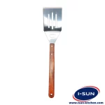 کفگیر شیار دار مناسب برای آشپزی در منزل و رستوران فست فود کافه قنادی جهت پخت انواع غذاها که به صورت شیار دار و از جنس استیل و دسته چوبی طراحی شده تا روغن و آب اضافی از غذا گرفته شود