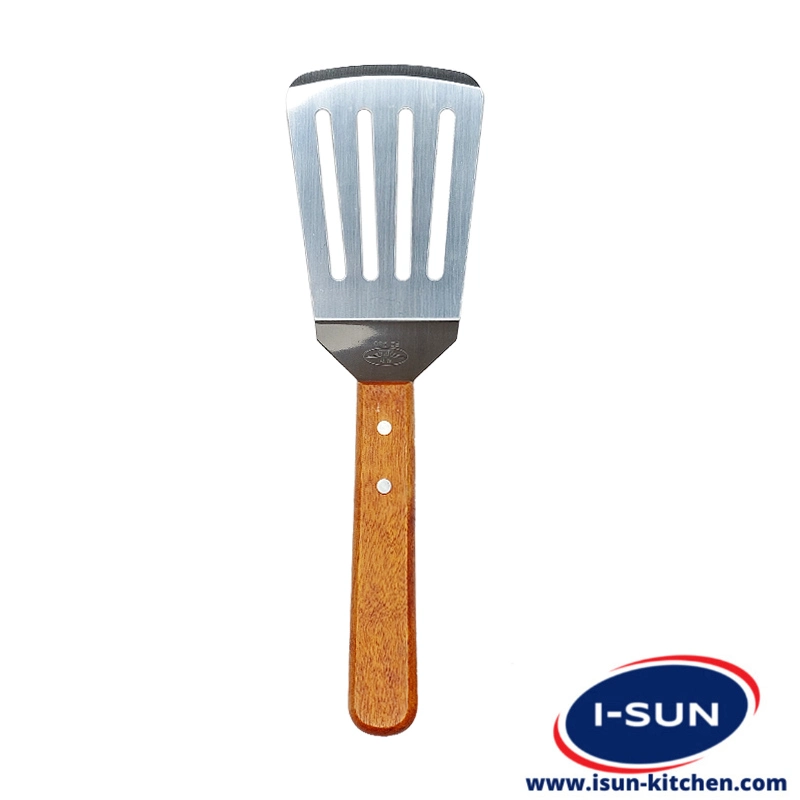 کفگیر شیار دار مناسب برای آشپزی در منزل و رستوران فست فود کافه قنادی جهت پخت انواع غذاها که به صورت شیار دار و از جنس استیل و دسته چوبی طراحی شده تا روغن و آب اضافی از غذا گرفته شود