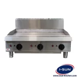گریل تخت رومیزی طرح تور یکی از محصولات بسیار پر طرفدار و با کیفیت شرکت آیسان می باشد که در اندازه های طول 60 سانتی متر و طول 90 سانتی متر ساخته می شود. این دستگاه یکی تجهیزات بسیار حیاتی و پر کاربرد در آشپزخانه های صنعتی علی الخصوص فست فودها و رستوران های ملل می باشد. البته امروز به علت وجود غذاهایی مانند سالاد سزار و… دستگاه های گریل در خط پخت کافه ها و… نیز مورد استفاده قرار می گیرد. ابعاد درخواستی کاربران جهت خرید دستگاه با توجه به ظرفیت پخت و حجم مشتریان انتخاب می شود. و معمولا در رستوران های پر رفت و آمد از گریل های 90 استفاده می شود. این دستگاه با قرار گرفتن یک سنگ مغناطیسی به ضخامت 20 میلی متر روی آن گرمایی یکنواخت و بسیار مناسب را جهت پخت در اختیار کاربران قرار می دهد. ضمنا یکی از مزایای این دستگاه وجود قسمت اگزوز جهت تخلیه ی گازهای اضافی روی آن می باشد. از دیگر مزایای این دستگاه وجود پایه های تنظیم شونده و سینی تخلیه ی روغن روی دستگاه می باشد. این دستگاه معمولا روی یخچال زیر اجاق یا یک میز کار با ارتفاع مناسب قرار می گیرد. این دستگاه از ورق استیل ساخته شده است و از نظر ماندگاری بسیار مناسب است.