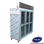 یخچال ایستاده کبابی 2 متری آیسان در 2 نوع دو طرف نما و پشت بسته که با انتخاب مشتری ساخته می شود با ترموستات و ترمومتر دیجیتالی کمپرسو ویژه جهت آب و هوای گرمسیر دارای شیشه های دوجداره با زاویه دید مناسب این یخچال با ریل مخصوص کباب ، کفه داخلی از ورق استنلس استیل و بدنه خارجی و در ها از ورق استنلس استیل ، با بدنه استیل خشدار یا براق ، طراحی و تولید می گردد.