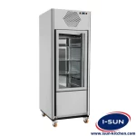 یخچال ایستاده کبابی 80 آیسان در 2 نوع دو طرف نما و پشت بسته که با انتخاب مشتری ساخته می شود با ترموستات و ترمومتر دیجیتالی کمپرسو ویژه جهت آب و هوای گرمسیر دارای شیشه های دوجداره با زاویه دید مناسب این یخچال با ریل مخصوص کباب ، کفه داخلی از ورق استنلس استیل و بدنه خارجی و در ها از ورق استنلس استیل ، با بدنه استیل خشدار یا براق ، طراحی و تولید می گردد.