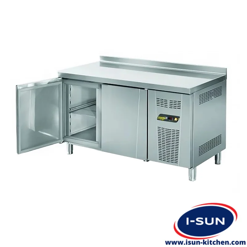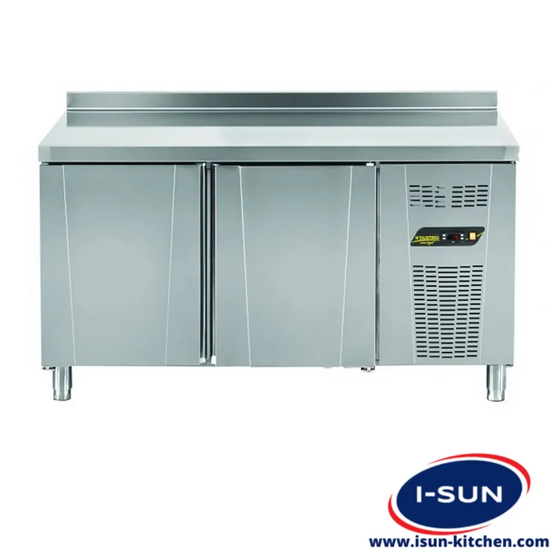 یخچال میز کار 150 سانتی کنار دیواری انداستریو N’DUSTRIO تمام سطوح از جنس استنلس استیل از جمله قسمت پشتی ، داخلی ، خارجی و بدنه ساخته شده است و صفحه ی بالایی آن لبه دار می باشد. گنجایش داخلی این یخچال زیاد است و لولاهای درب مقاومی دارد. درب یخچال از زاویه کمتر از ۴۵ درجه بسته می شود تا از حدر رفتن انرژی جلوگیری کند.